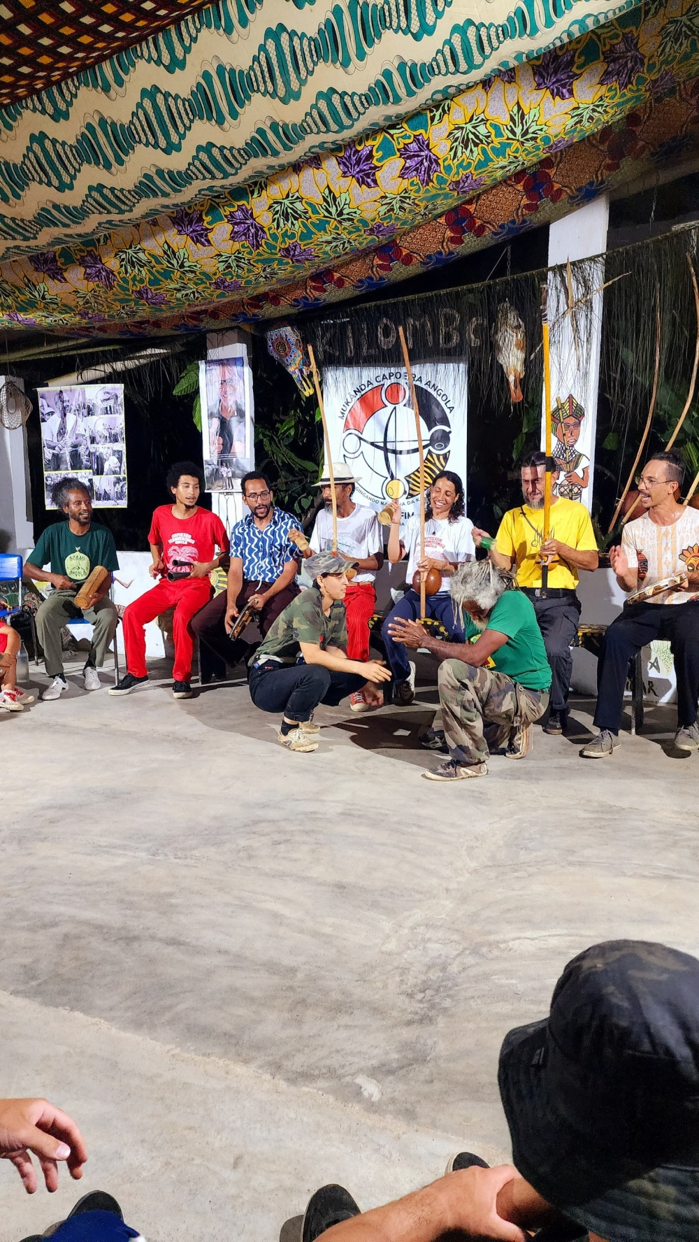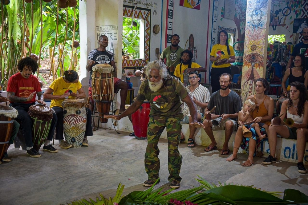 Colazione inclusa. Il giorno comincia al mattino presto, con una classe di capoeira d’Angola guidata dal Mestre Cobra Mansa: non solo arte marziale, ma gesto rituale, linguaggio di libertà e strumento pedagogico. Dopo la pratica, condividiamo una colazione agroecologica, con cibi prodotti nel quilombo o nelle terre circostanti, coltivati secondo principi di equilibrio tra uomo e natura. La mattinata prosegue con una visita guidata al Kilombo, durante la quale ascolteremo racconti sulla visione che unisce questa comunità, i percorsi di autonomia territoriale, le relazioni tra spiritualità, agroforesta e resistenza. Per chi lo desidera, è possibile immergersi nelle acque del fiume vicino, luogo sacro e rigenerante. Nel pomeriggio, ci dedichiamo a un’attività di piantumazione o partecipiamo alla preparazione collettiva dell’acarajé, guidati da una donna baiana del quilombo. La cucina diventa spazio politico e affettivo, dove ogni ingrediente racconta una storia di migrazione e permanenza. La sera si apre in cerchio, con una festa comunitaria fatta di samba, musica, parole condivise e piccoli riti di celebrazione. È un momento di restituzione, di gratitudine e di appartenenza. Una notte che rimane nel corpo, come memoria viva di ciò che è possibile quando la comunità è al centro. Pranzo e cena inclusi.