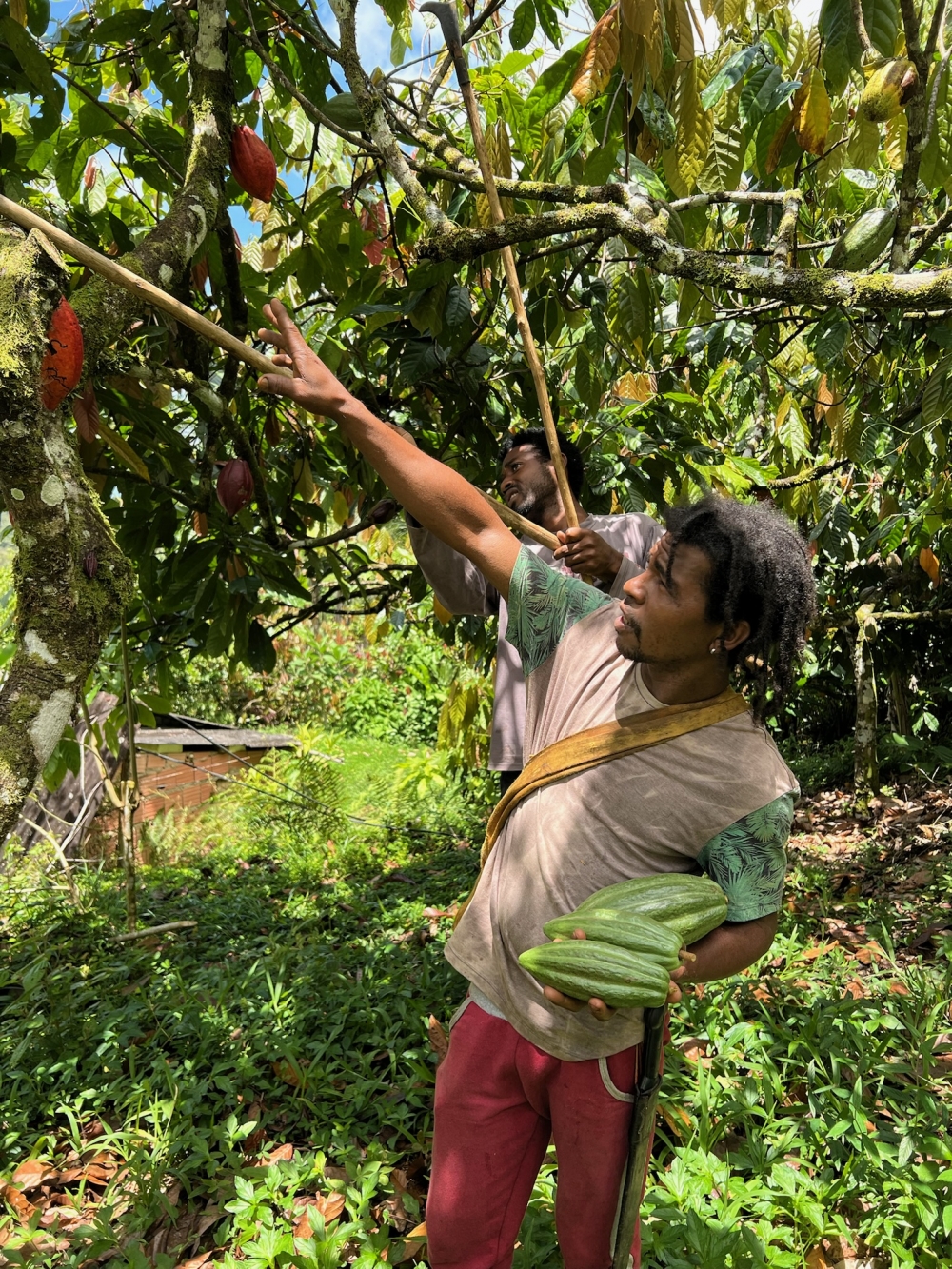 Colazione inclusa. Dedichiamo l’intera giornata alla scoperta di un progetto comunitario legato al cacao, dove la coltivazione agroforestale si intreccia con gli incanti della foresta, pratiche ecologiche e memoria collettiva. Accompagnati dai custodi del luogo, camminiamo tra sentieri di cacao e alberi di frutta tropicale, imparando il ciclo del cioccolato artigianale: dalla terra alle mani. Segue un pranzo in famiglia (incluso), occasione di dialogo con la comunità che ci accoglie. Al ritorno, ci prendiamo un momento di riposo ritornando in pousada per uscire più tardi a cena. Cena libera.