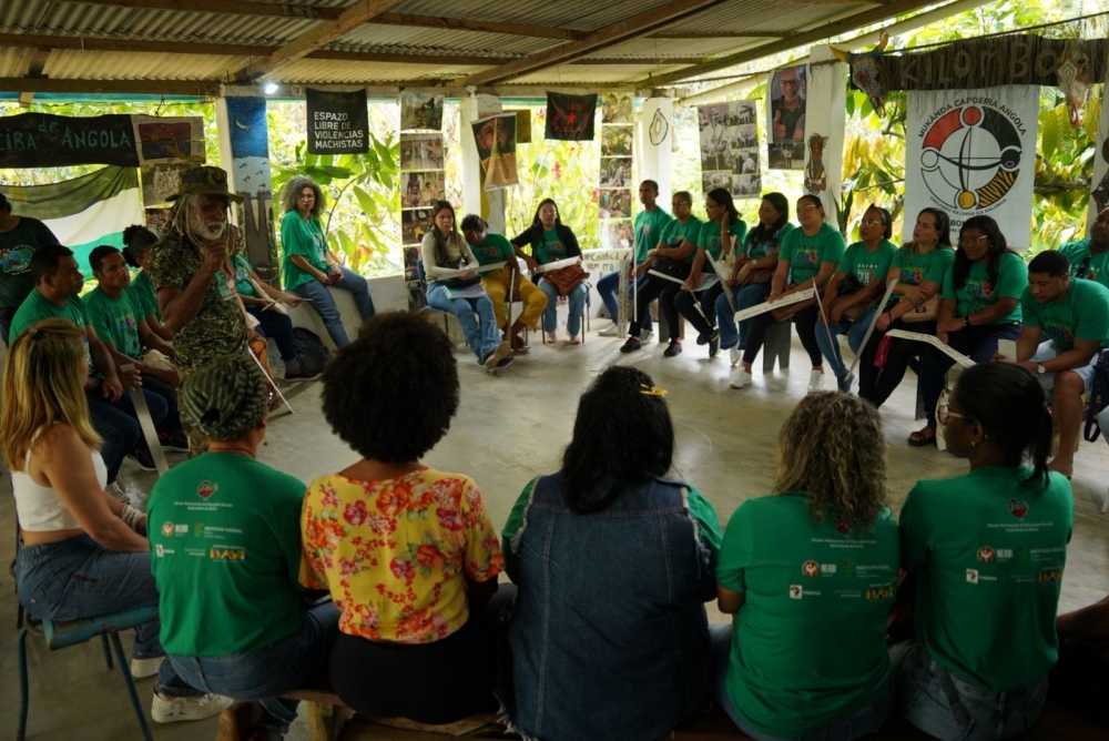 Colazione in paese (libera), lasciamo il Vale do Capão per intraprendere un nuovo attraversamento: circa sette ore di viaggio ci conducono verso sud, tra foresta atlantica, villaggi rurali e strade rosse di terra, fino a Kilombo Tenondé, comunità agroecologica e spazio di radicamento culturale e spirituale fondato da Mestre Cobra Mansa. Dopo una pausa pranzo lungo il cammino (pranzo libero), arriviamo nel tardo pomeriggio, accolti dalla quiete del luogo e dall’intensità della sua storia. La sera condividiamo una cena comunitaria (inclusa), seguita da una ruota di conversa con Mestre Cobra Mansa, figura storica della capoeira d’Angola e guardiano della memoria afrodiscendente. Con lui entreremo nel cuore pulsante del quilombo: una visione di autonomia, educazione, agroecologia e arte come forme contemporanee di resistenza, cura e unione. Un incontro che non è solo testimonianza, ma invito profondo alla responsabilità e alla trasformazione.