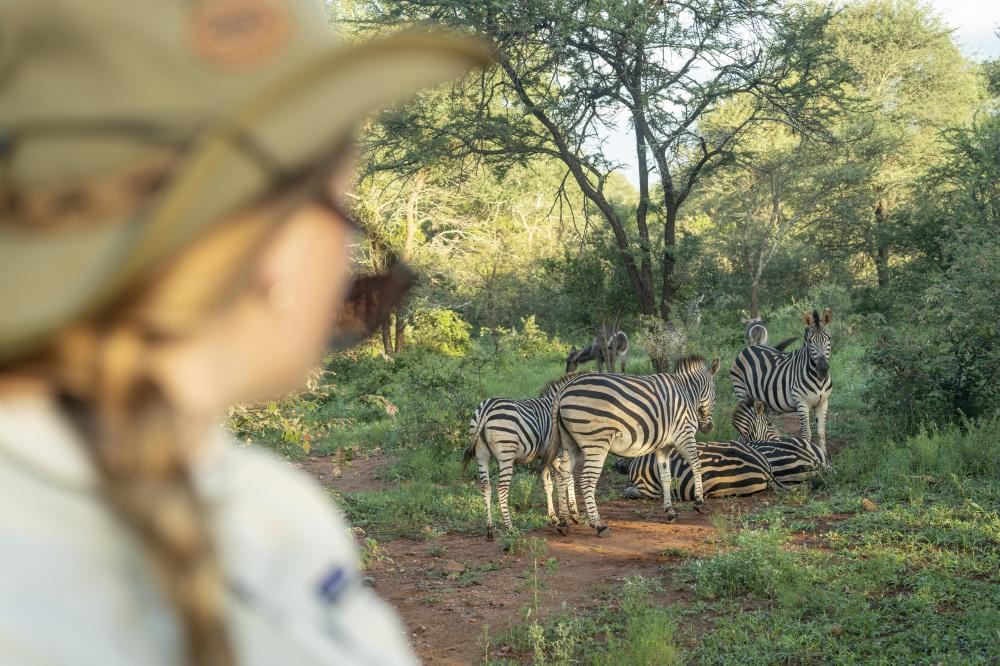 Il giorno si apre con una bevanda calda e il primo respiro d’aria fresca nella boscaglia. Il sole sorge lento, e con lui i suoni della savana: un’orchestra naturale che accompagna la giornata. Durante il safari mattutino, si esplora il mondo degli alberi — maestri silenziosi della savana. Si imparano i loro nomi, le caratteristiche delle cortecce, i profumi delle resine, gli usi tradizionali come rimedi o strumenti. Si scopre come ogni albero, nel suo ciclo vitale, custodisca il legame invisibile tra acqua, suolo e vita. Dopo il rientro al campo, un ricco brunch accoglie i partecipanti. Le ore centrali del giorno scorrono lente, tra riposo, piscina e contemplazione. Nel primo pomeriggio iniziano i preparativi per la notte più speciale del viaggio: la notte sotto le stelle, il sleepout.
