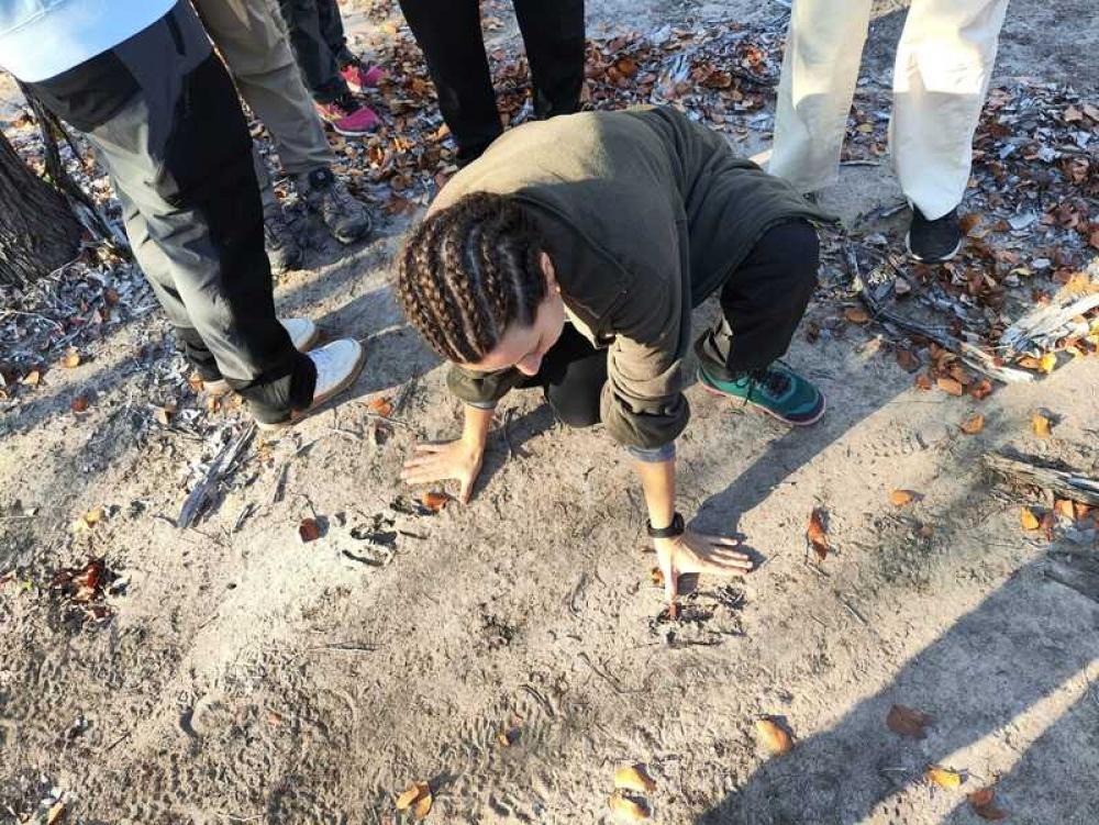 La giornata inizia con una passeggiata mattutina dedicata all’arte del tracking: riconoscere orme, escrementi, segni sugli alberi e leggere le storie che la natura scrive sul terreno. Attraverso un safari e una camminata nella boscaglia, i partecipanti imparano a interpretare i comportamenti animali e a sviluppare un’osservazione attenta e rispettosa. Dopo il brunch e un momento di relax, il pomeriggio si trasforma in un laboratorio pratico: una pista animale simulata mette alla prova le competenze acquisite. Il giorno termina con un aperitivo al tramonto e una breve introduzione al cielo notturno australe, dove le costellazioni diventano mappe di orientamento, oltre che di meraviglia.